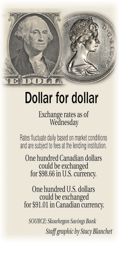 He said he stopped at one fast food restaurant in Waterville and the cashiers would not take his money at all — even at par with the U.S. dollar. Another store offered to exchange $100 Canadian dollars for $90 U.S. — when often the exchange rate favors the Canadian currency.