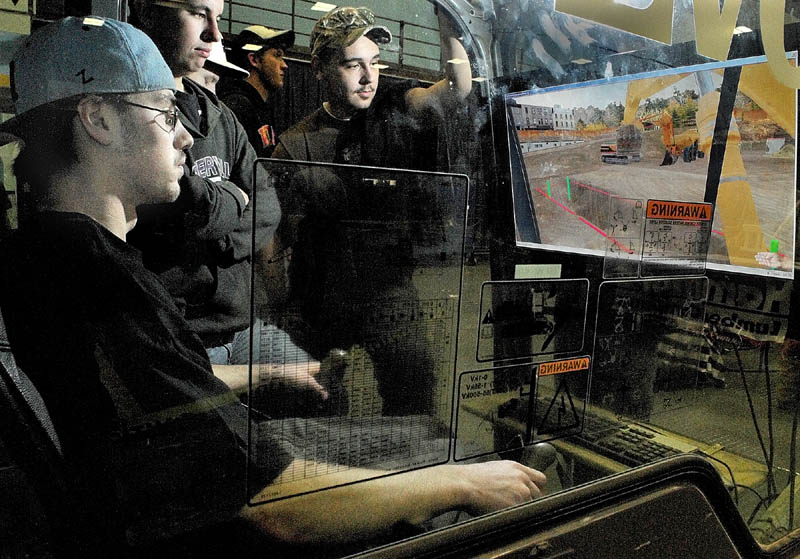 Waterville High School student Billy Durand watches a large computer screen as he runs the controls on an excavator simulator during the 12th annual Craft Championships sponsored by Associated Builders and Contractors on Friday at the Augusta Civic Center.  About 1,000 students from 17 regional vocational technical centers across the state attended the event, which featured 25 demonstrations with master craftsmen and skills competitions. Winners of the regional event go to compete at the Associated Builders and Contractors national convention next spring.