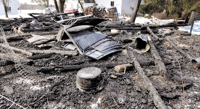 The blackened remains of a barn are all that is left following an early morning fire at the Dena Worster residence on Route 2 in Palmyra on Monday. Worster said she did not know the cause of the fire. “When I came out and saw the fire, it looked like a scene from the ‘Gone with the Wind’ movie,” Worster said.