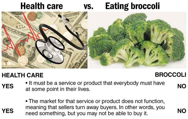 Let’s test the examples presented to the high court: Can the government force you to eat broccoli? This proposition fails on both counts. Nobody must eat broccoli during their lives, and the market for broccoli is normal. If you want broccoli, go buy it. Nothing stops you.
