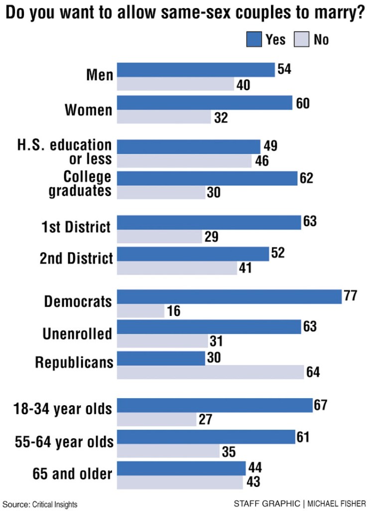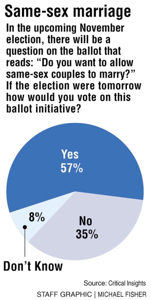 “More than most election issues, that’s an issue where you have to take (polling) numbers with a grain of salt. I think those numbers will be closer on Election Day,” Melcher said. “That said, I think there’s been a lot of momentum in favor of same-sex marriage around the country.”