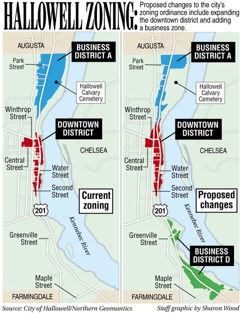 HALLOWELL — Proposed changes to the city’s zoning ordinance include consolidating residential categories, expanding the downtown district toward Second Street and adding a business zone at the southern end of Water Street.
