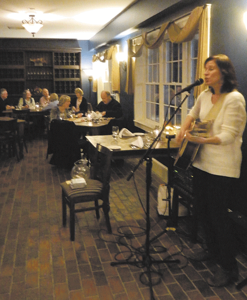 The blazing fireplace across the room, the soft voice of Katie Daggett singing our favorite songs, flickering candles, gorgeous artwork, a delicious bottle of wine and tasty food all caused us to linger for more than three hours in No. 10 Water, the inn’s very nice tavern and restaurant.