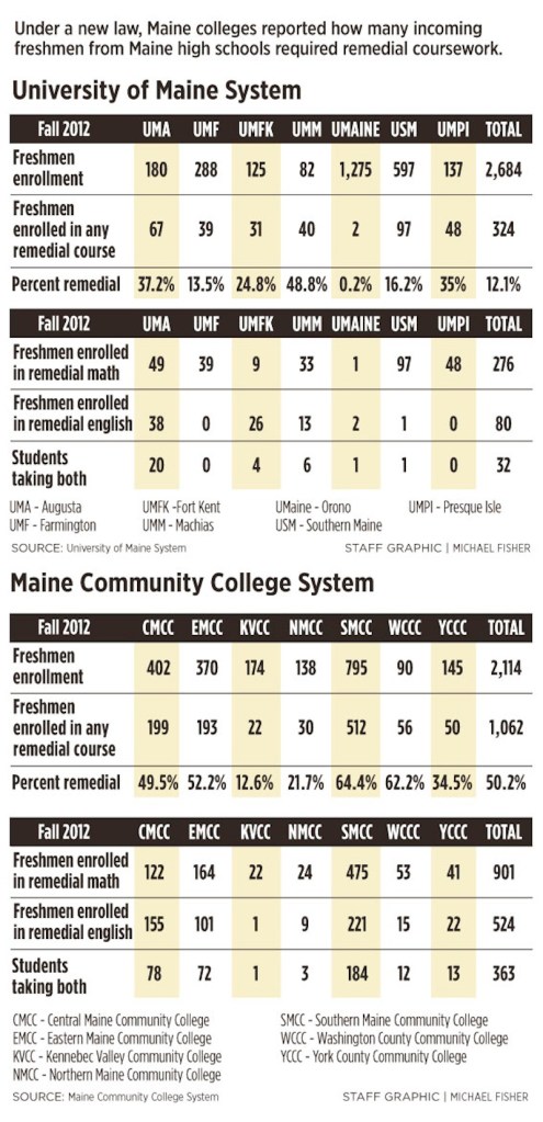 Maine’s public colleges released this year’s freshman data under a new state law that requires them to report remedial course numbers every year. In the future, the data will show whether those students stayed in school.