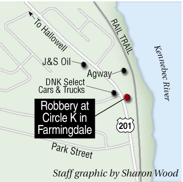 A woman entered the store shortly before 7:30 p.m. Sunday, and confronted the cashier with a pistol, according to Kennebec County Sheriff’s Sgt. Scott Taylor. She left with an undisclosed amount of money and headed north on foot.