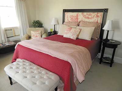 Our room was tastefully decorated. Antique picture-fabric adorns the headboard and valances. A granite- topped sink sits in an old cabinet. Two very comfortable chairs provide a place to enjoy your morning coffee while enjoying a stunning view.