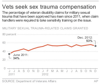 The Ruth Moore Act of 2013 aims to help victims of military sexual trauma qualify for disability benefits from the Department of Veterans Affairs. Bill supporters argue that disability claims for mental health conditions linked to a sexual assault should be treated the same as claims for post-traumatic stress disorder, or PTSD, from combat. The VA receives thousands of claims linked to sexual assaults every year. However, advocacy groups contend the approval rate is too low, in large part because many veterans never report the assaults out of fear of retaliation, or the documentation has been lost or destroyed.