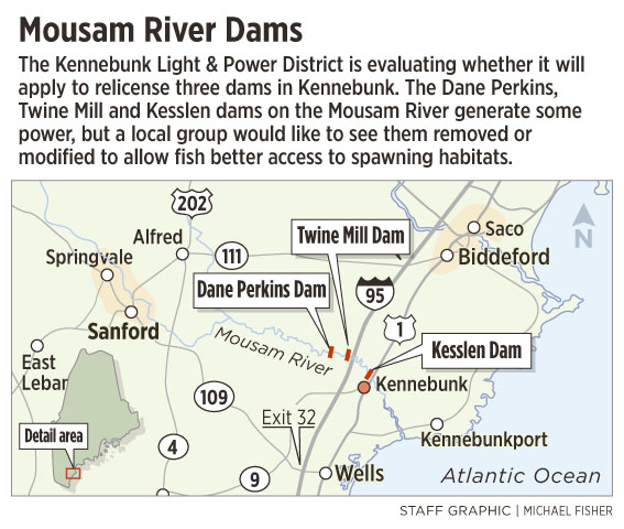 Mere said removing the three Kennebunk Light and Power dams or installing fish passageways over the dams would provide 17 miles of spawning habitat for fish.