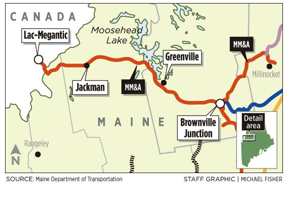 Between Lac-Megantic and Brownville Junction in Maine, a stretch of 117 miles, there is only one customer, Moose River Lumber, in the town of Moose River near Jackman.
