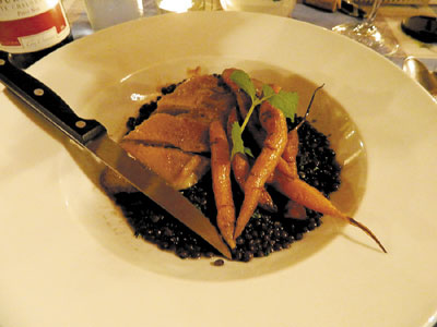 Yes, I wanted it all! After a lot of dithering, I chose the duck confit. The duck was soft and tender, the black lentils tasty, the carrots crispy, the marmalade sauce not to sweet or overpowering. Delightful.