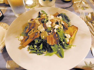 When I asked our server, Hannah, the island’s pre-K teacher, what her favorite “First Tastes” item is, she said the Roasted Squash Salad. So I ordered it. The roasted squash was the star of the salad, and the wonderful variety of greens, crispy bacon, onions and cheese all added flavors to the lightly dressed dish. A good choice, indeed.
