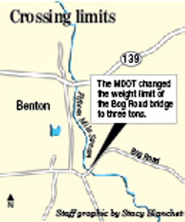 BENTON — A new weight limit on a Bog Road bridge will force large vehicles, including plows and fire trucks, to make a long detour if they want to access a part of the road.