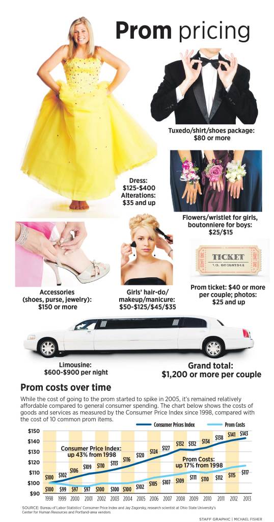 Although prom sticker prices may shock some, Jay Zagorsky, a research scientist at Ohio State University’s Center for Human Resources, found that prom expenses haven’t been rising as much as overall consumer goods.