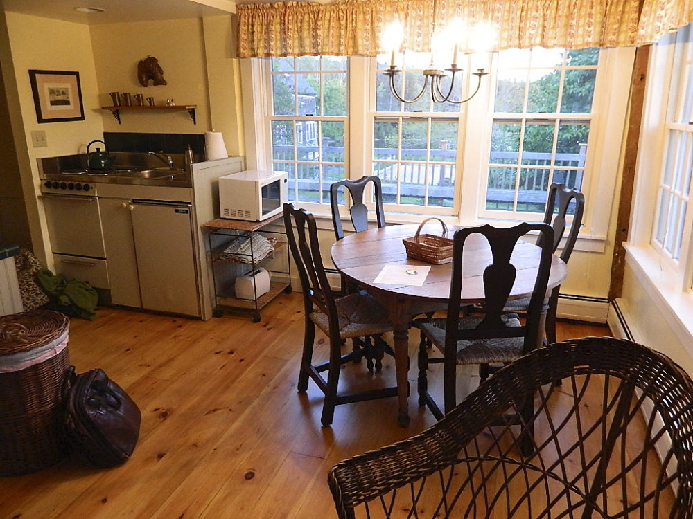 A visit here is like stepping back in time. The main inn has pumpkin pine floors and features two eight-foot-wide original fireplaces — they are incredible works of art. There are wonderful sitting areas in the common room and the library, a taproom where the bar is located and a lovely dining room on the first floor with guest rooms on the upper floors.