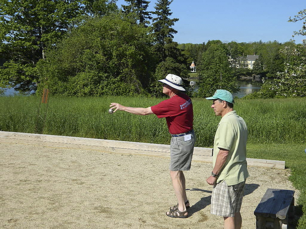 Late afternoon found Rusty and I in heated games of petanque on the inn’s court. He claimed to have never played, but I think he secretly must have been practicing because he won every game. If the setting, beautiful grounds, the mill pond and the ocean across the road, hadn’t been so spectacular, I would have been despondent.