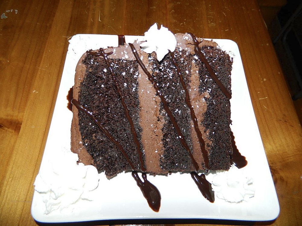 Nobody needed dessert. But our waiter convinced us that the Tall Three Layer Chocolate Cake was a sharable dessert. I have never seen such a huge slice of cake! Jim told us this is the regular sized serving and that he has seen individuals eat the whole thing, but that can’t be very often. The gigantic slice made its way around the table several times before we could clear the plate. Most of us took a single bite and passed it on, relishing in the deep chocolate decadence. But soon we noticed that the cake slowed way down as it landed in front of Gordon or George. Hmmm, it’s something about those Smith genes.