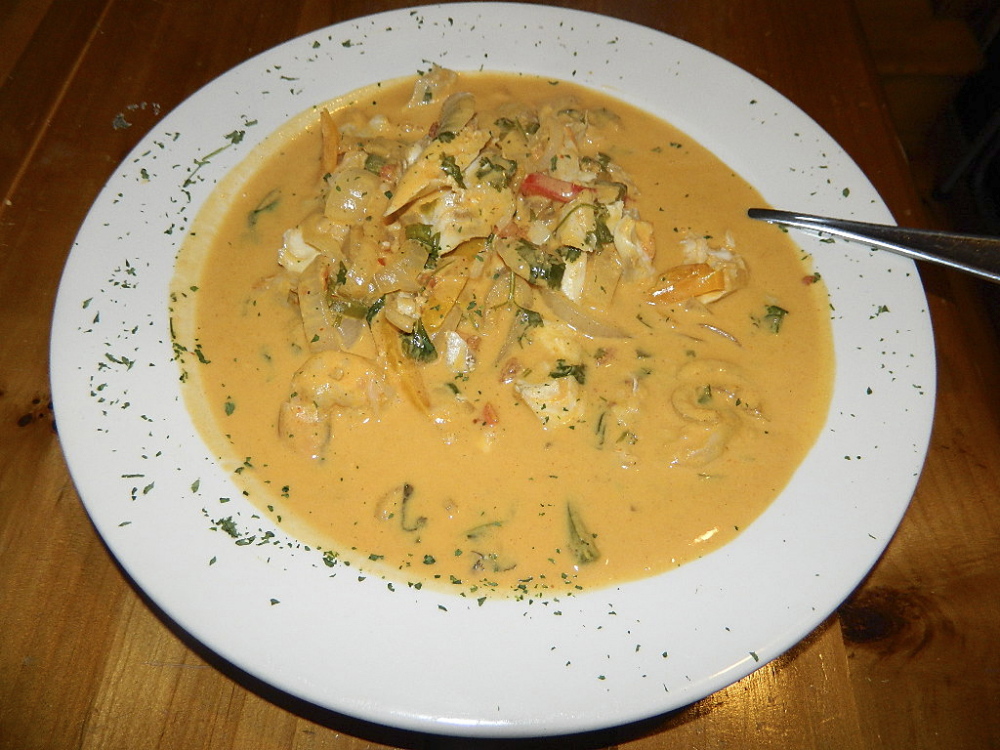 And while I’ve broken out to enjoy the blackened haddock and BBQ ribs in the past, I always order, on our first visit of the year here, the Moqueca Brazilian Seafood Stew. Jim calls it their “signature dish,” and told me he’d had Brazilian visitors who said it wasn’t quite as good as it is in Brazil, but very close. Guess I’ve got to go to Brazil now!