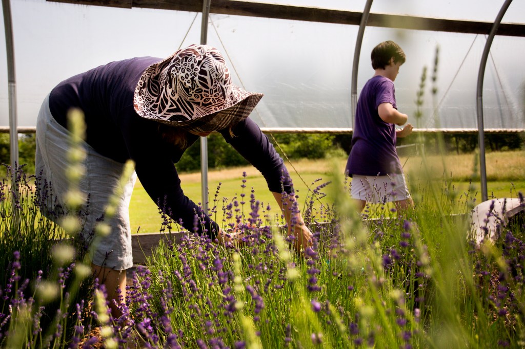 Costigan and her middle son, Hugh – a 12-year-old who can answer as many questions about lavender farming as his parents – demonstrated the proper way to cut by grabbing some English lavender wands between their thumb and forefinger, circled to make an “OK” sign.