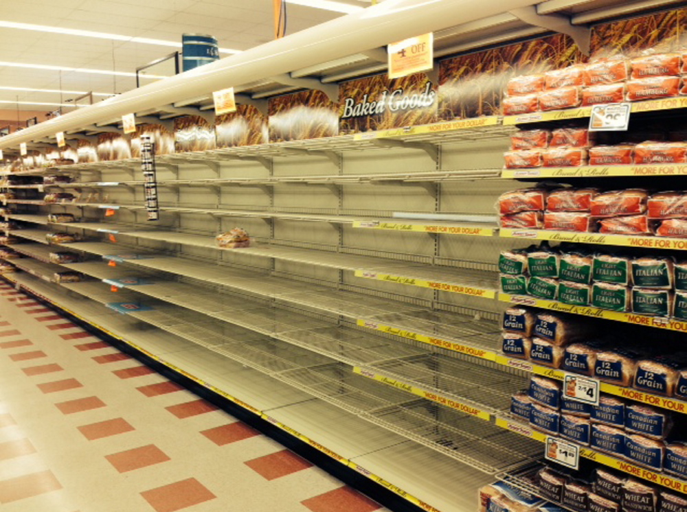 Behind the deli counter at Market Basket in Biddeford, clerk Jeremy Webster has nothing left to sell, and no customers to buy it if he did.