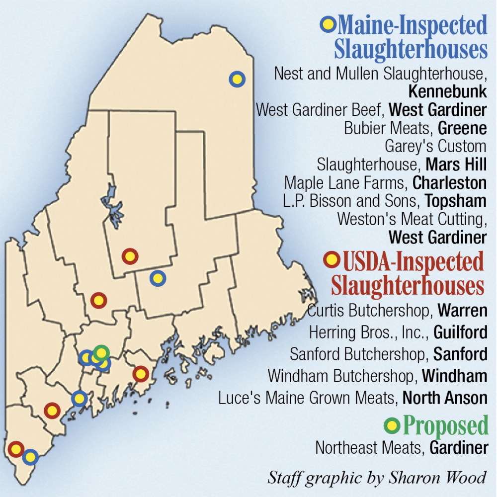 “The whole idea behind it is to try to keep more meat in Maine for people to eat. Right now, tractor-trailer trucks are rolling out of the state with Maine animals,” he said. “It would be nice to have a facility that’s big enough to support them.”