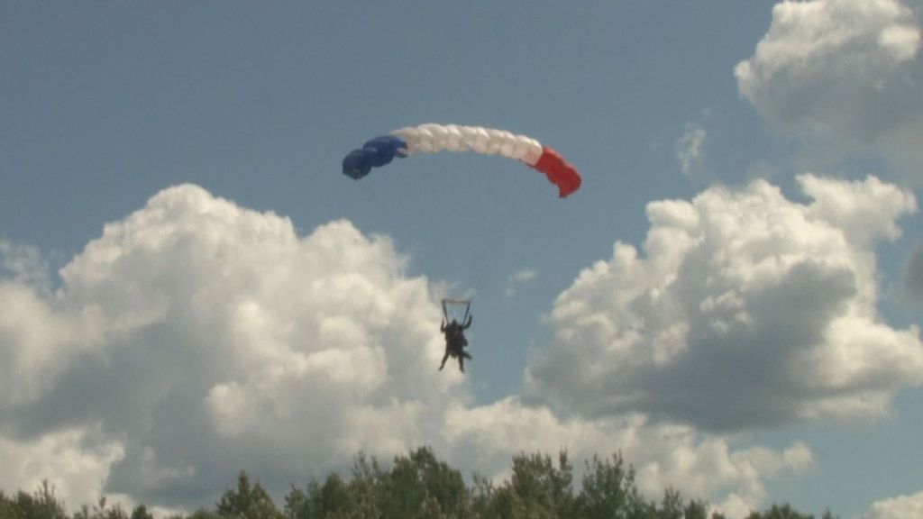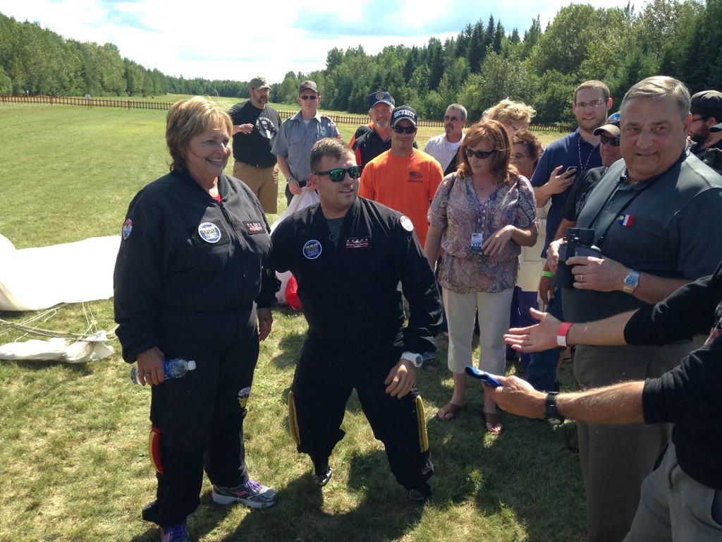 Ann LePage met Mills after learning of his efforts to create a camp for wounded veterans and their families. She said she couldn’t turn Mills down when he challenged her to join him on the jump – even though she’s afraid of heights.
