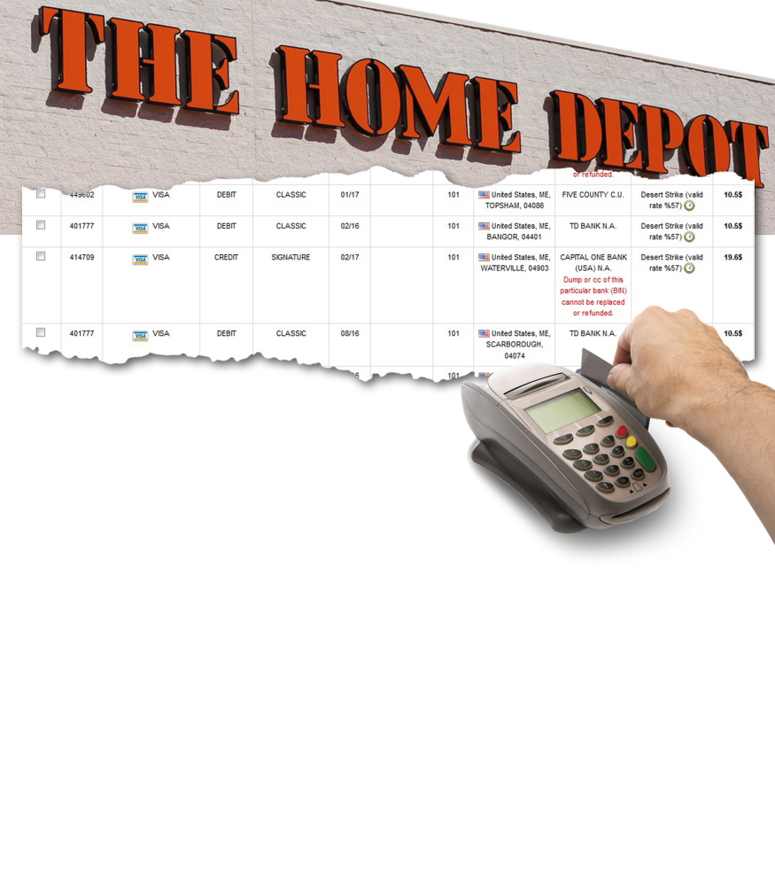 A Press Herald analysis of the black market site found that the greatest volume of card numbers from Maine appears to have been stolen from the Home Depot in South Portland (7,900), followed by Biddeford (6,800) and Topsham (6,550). It is likely the theft numbers at those stores are even higher because the black marketeer’s website limits card number searches – which can be done using different criteria such as card type, issuer and expiration date – to 1,650 results.