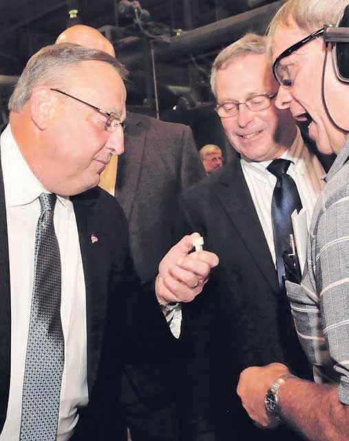 During a press conference Wednesday at Pride, LePage touted his “Maine is Open for Business” campaign and spoke on the state of manufacturing in Maine and the wood products industry.