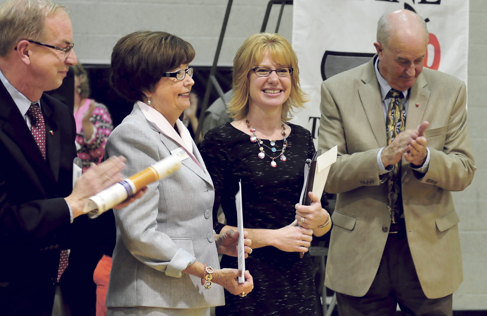In his remarks presenting Dorman with a ceremonial plaque, Rier said Dorman’s commitment to the betterment of her students, her colleagues and her school represented “the epitome of what teaching is about.”