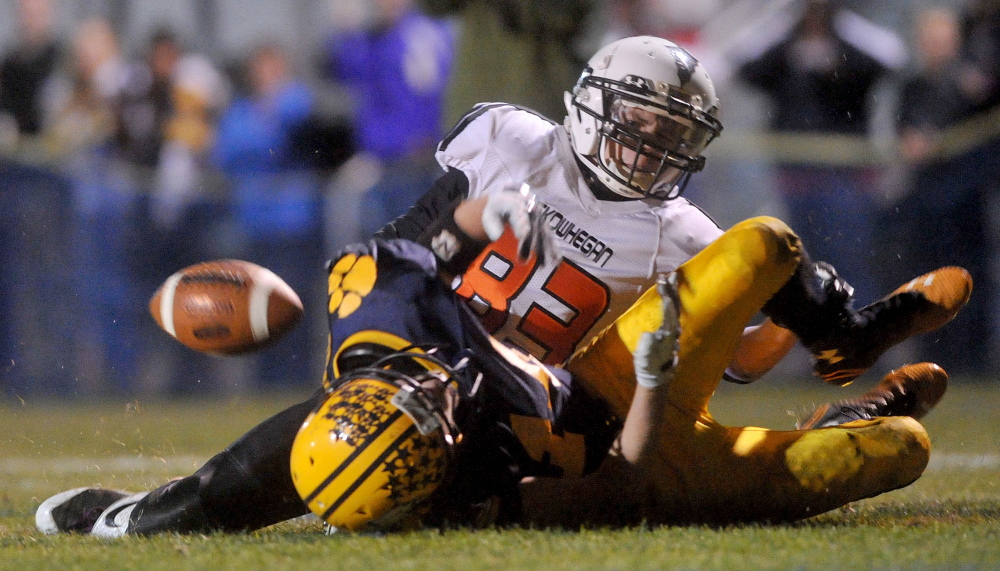 Brown’s 13-yard run with 8:31 left in the game gave Skowhegan a 26-14 lead. Mt. Blue cut the led to five points, 26-21, when Ryan Pratt threw a 26-yard touchdown pass to Christian Whitney with 2:11 to play. Skowhegan recovered the onside kick and ran out the clock.