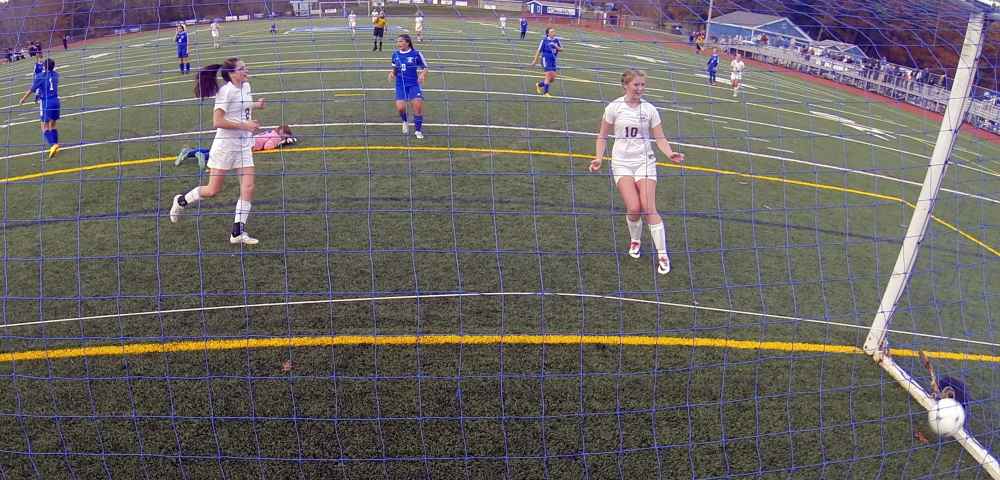 It only took 50 seconds for the two to hook up again, this time on a through ball that left Anair one-on-one with the Searsport goalkeeper.