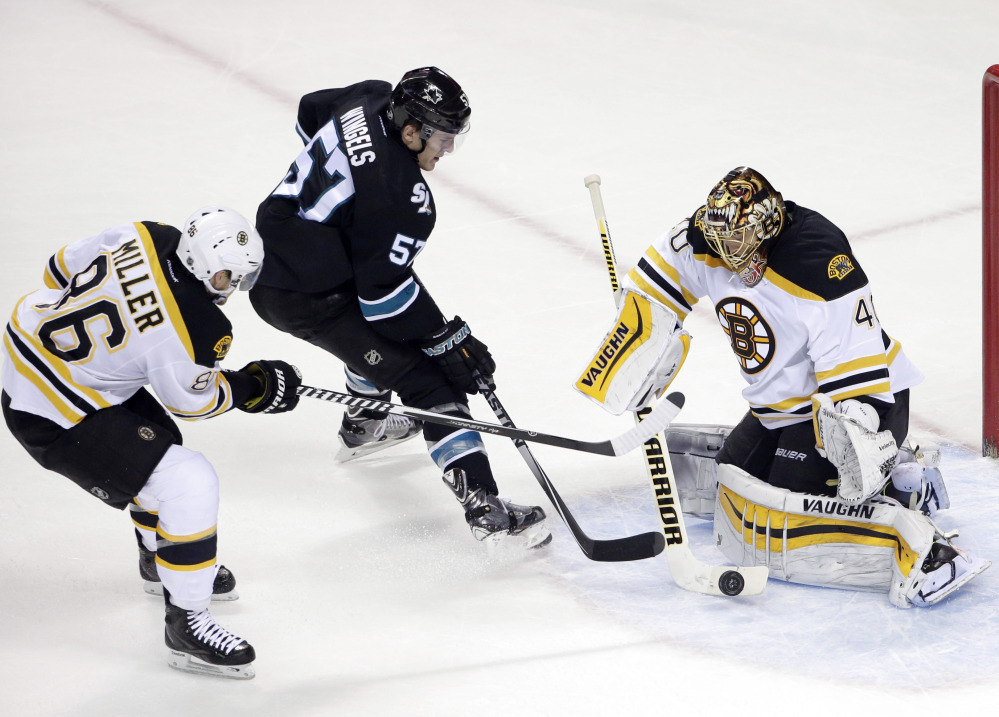 San Jose scored four goals in the second period to erase a 2-0 deficit. The Bruins also scored twice in the period, and the game was tied 4-4 entering the third.