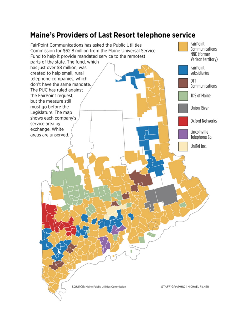 FairPoint has argued that the market has fundamentally changed and made it harder for the company to justify the cost of maintaining its network in rural areas where customers, and therefore revenue potential, are thin. It is seeking the $62.8 million from the Maine Universal Service Fund, which collects roughly $8.3 million a year from fees.