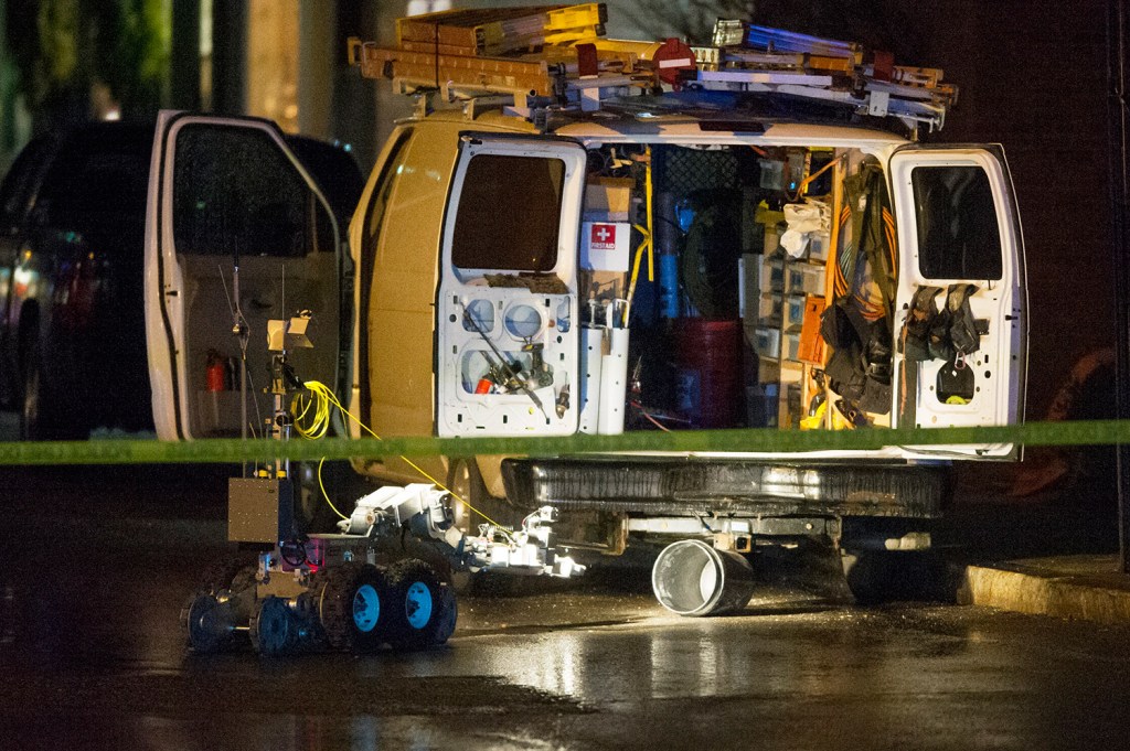 It was removed from the van by the department’s remote-controlled robot.
