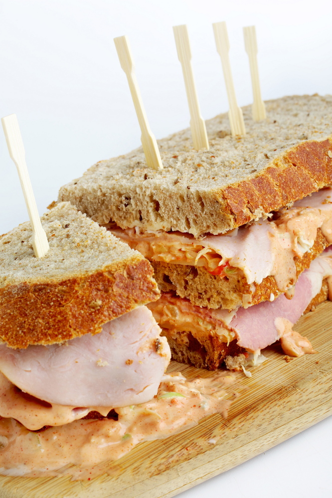 The sandwich can be assembled a few hours in advance; keep whole and refrigerated, wrapped in plastic wrap.