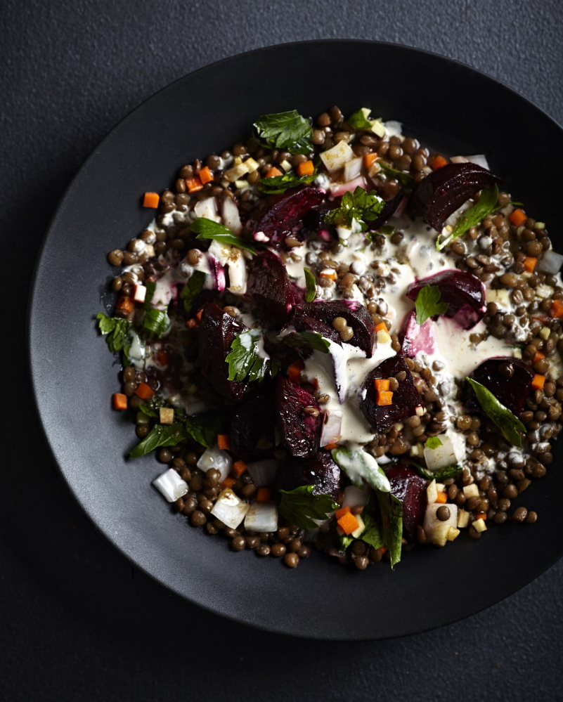 This recipe has a lot of components (although you can make several of them ahead of time). You’ll need to cook the Lentils for Salads component, make a tahini sauce, then a vinaigrette, and finally the beet and lentil salad itself. To make the recipe easier to follow and to reflect the order in which you’d probably cook it, we’ve done some rearranging. The resulting salad, according to Romero, is “pure beet bliss.”