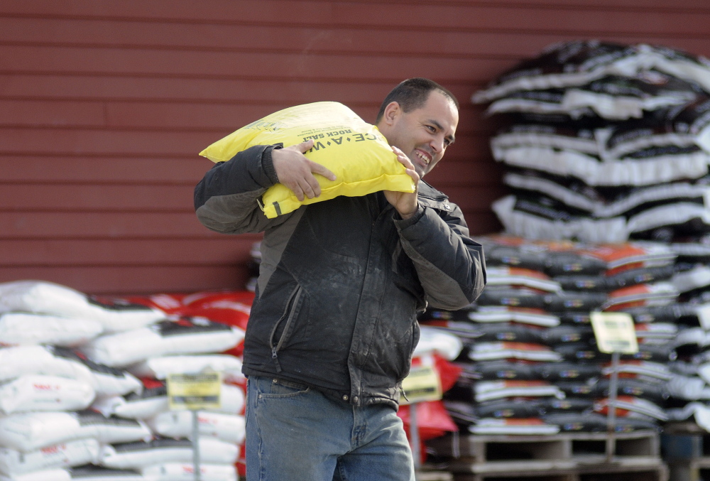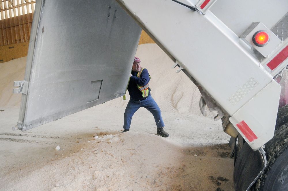 Public works crews in central Maine were also preparing Monday for the storm, fueling vehicles and ensuring trucks were loaded with salt and sand.