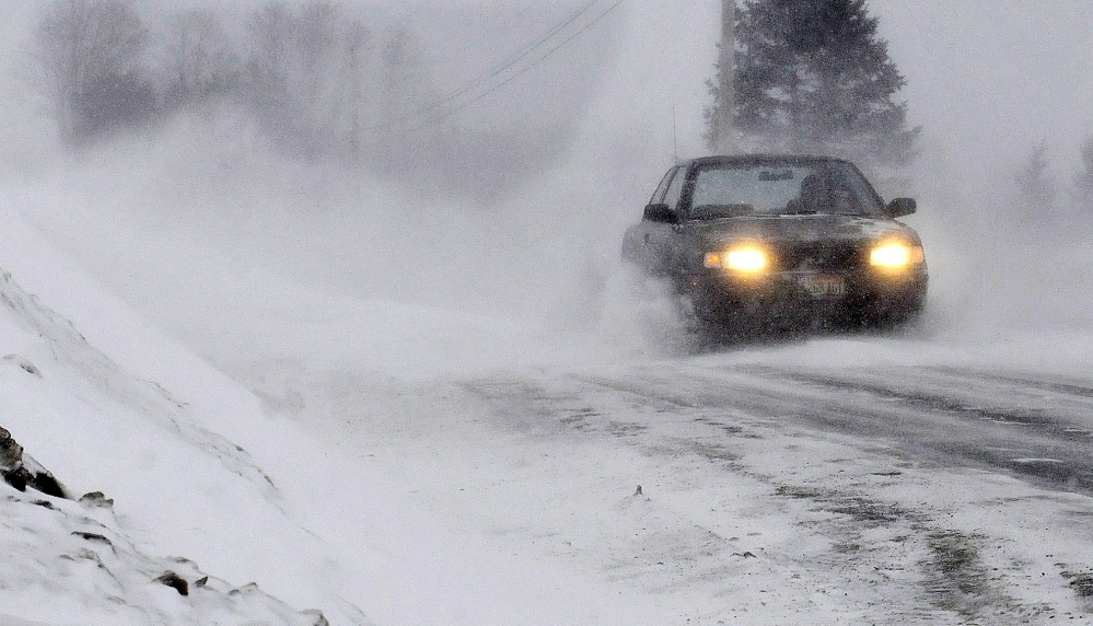 A few inches of snow fell lightly on central Maine this weekend, a far cry from the 18 inches to two feet predicted.