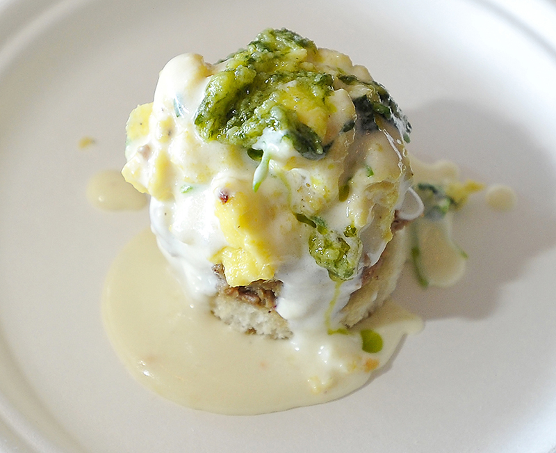 The buzz at the Incredible Breakfast Cook-Off Friday was all about the Portland restaurant’s savory smoked brisket hash patties with scrambled eggs and pea shoots, Italian cheese fonduta and salsa verde. This was their first time at the cook-off, and they took home first place.