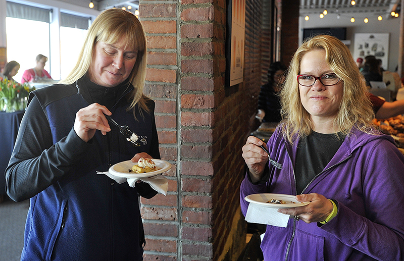 Paige Driver and Chelsea Hogan sat at a booth, surrounded by small plates of breakfast food. They are both students at the University of New England in Biddeford and bought tickets at the last minute, after reading about the event on MaineToday.com.