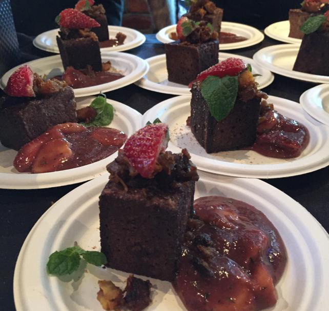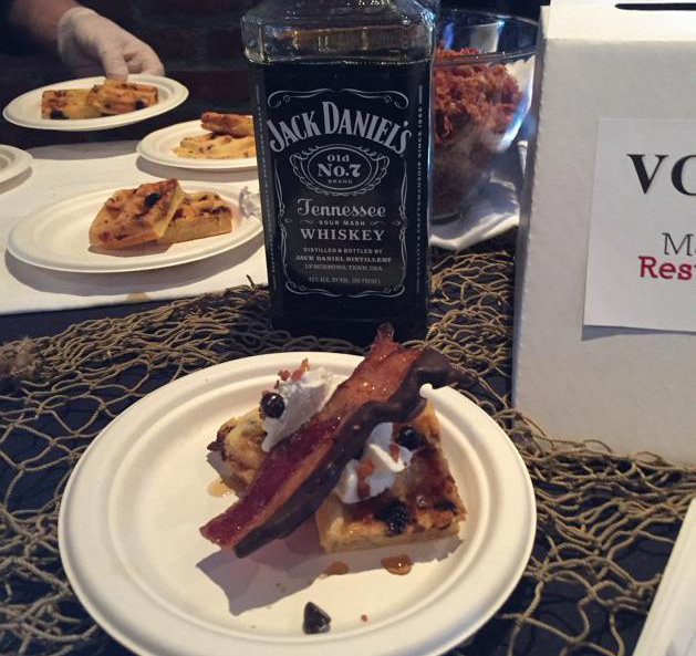 The popular cook-off was a noticeably more low-key event than in years past; usually, it sells out ahead of time – this year, there were still some tickets to be had at the door. Yet like Kostopoulos, most of the chefs upped their game, serving particularly imaginative dishes. (Breakfast trend that’s still hot: candied bacon.) Chef Isaac Aldrich of the Sebasco Harbor Resort served a decadent bacon and chocolate chip waffle, topped with candied bacon that had been dipped partially in chocolate. It was covered with Jack Daniels maple syrup and whipped cream.