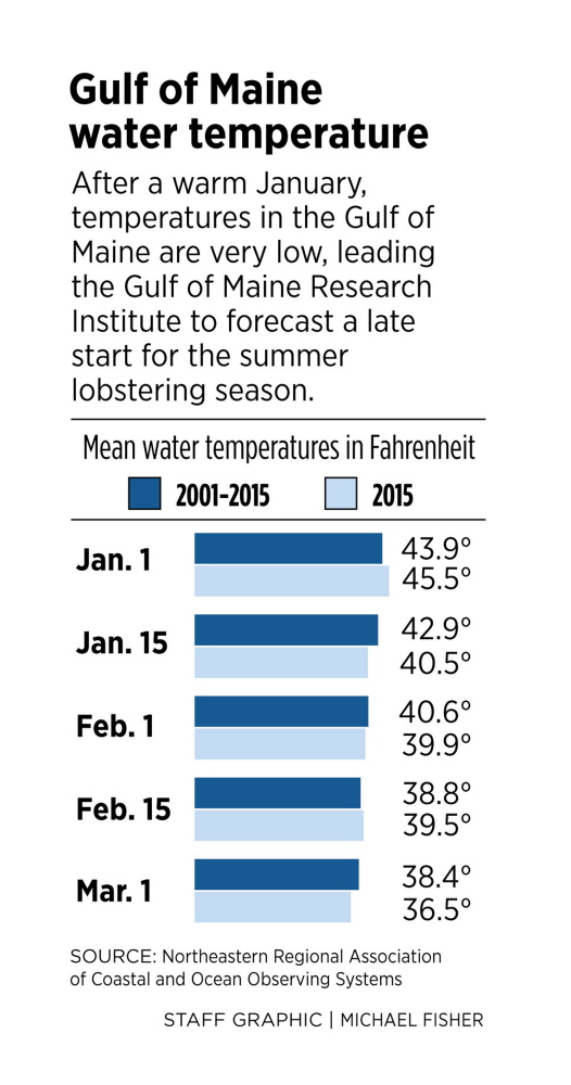The forecast won’t surprise Maine lobstermen, because they’ve noticed how cold the ocean is, said Patrice McCarron, executive director of the Maine Lobstermen’s Association.