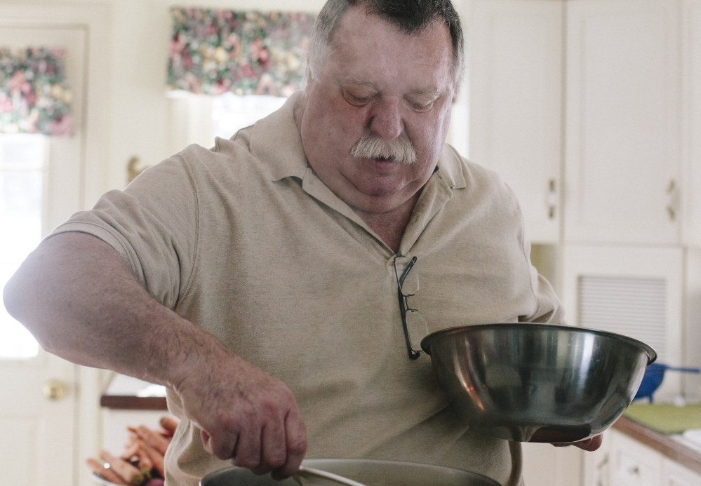 “Some people put it all together, but when you take it out the meat’s tough,” he said in his kitchen in Naples, where his half-Papillon, half-Maltese dog Lucy danced at his feet while he cooked. “If I did that, after 45 minutes the veggies are going to fall apart.”