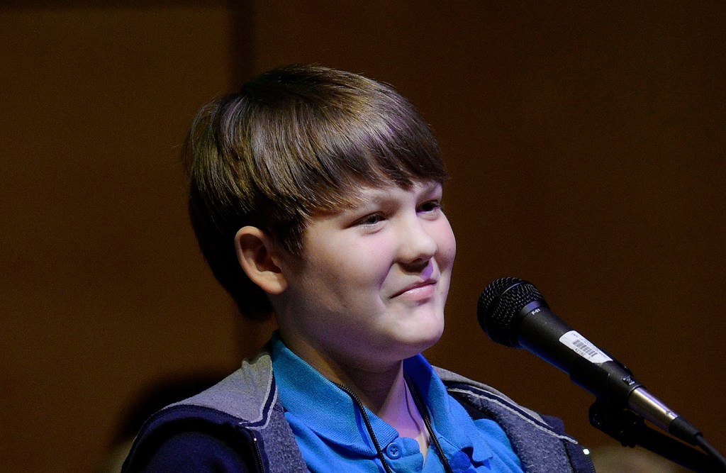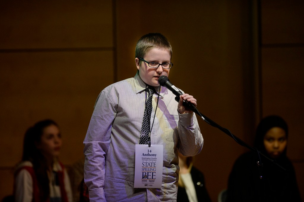 “Michael, your word is ‘credible,'” pronouncer Jeannine Uzzi said to speller Hockenberry of Skowhegan Area Middle School.