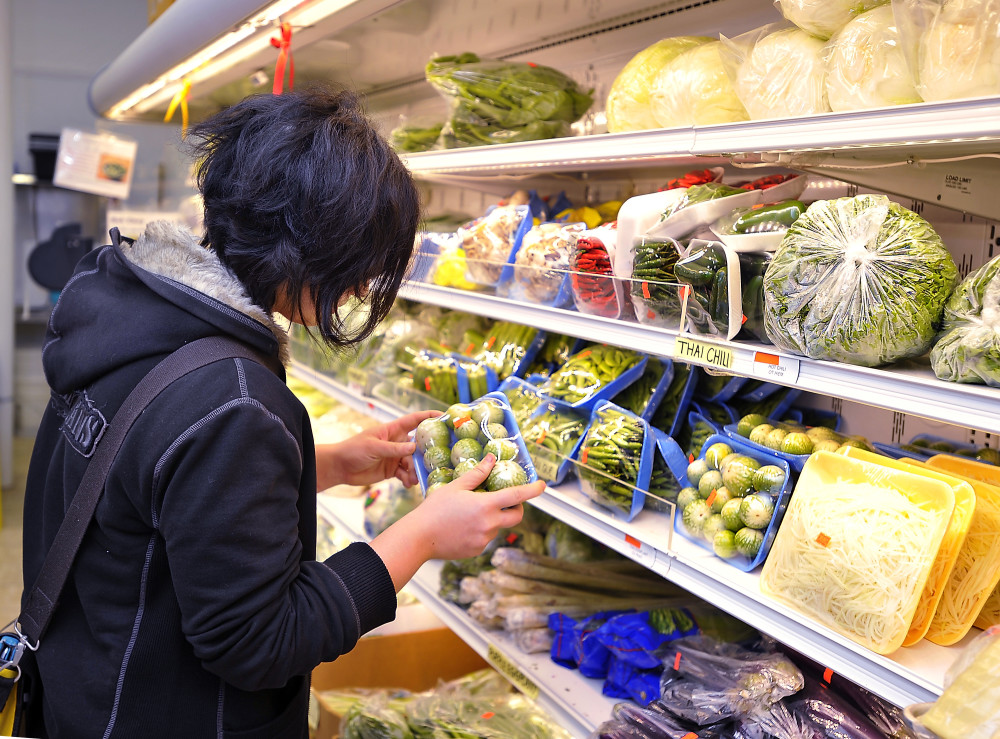 After the morning check-in at Bao Bao on Spring Street, Stadler and Poulos split the shopping at three Asian markets. (In the summer, they also go to local farmers markets four times a week.) Stadler likes to do the shopping herself so she doesn’t have to waste time sending back produce that doesn’t meet her standards. At Veranda Asian Market, the chef pokes around the store, weighing young coconuts in her hands, while her regular order waits at the counter: six pounds of lemongrass, 10 pounds of Thai eggplant, chilies, green papayas, shiso, rice paddy herb, fish mint, fermented soybean discs, champagne mangoes, cilantro and Thai basil.