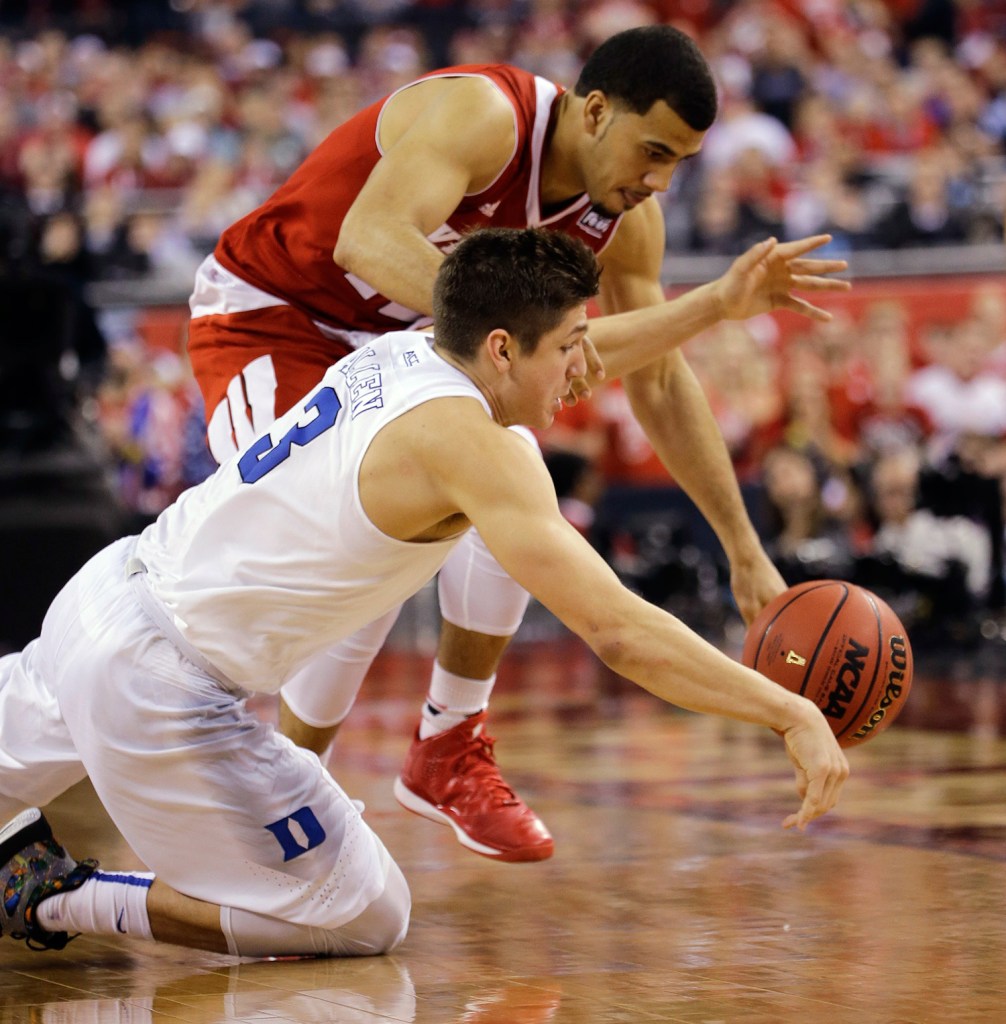 But Grayson Allen? The most unheralded of Krzyzewski’s first-year players, who averages four points a game, stepped up with Okafor on the bench for much of the second half in foul trouble. Allen, the slam-dunk champion at the high school McDonald’s All-American contest last year, scored 16 points and kept Duke in it when Wisconsin (36-4) looked like it was about to run away.