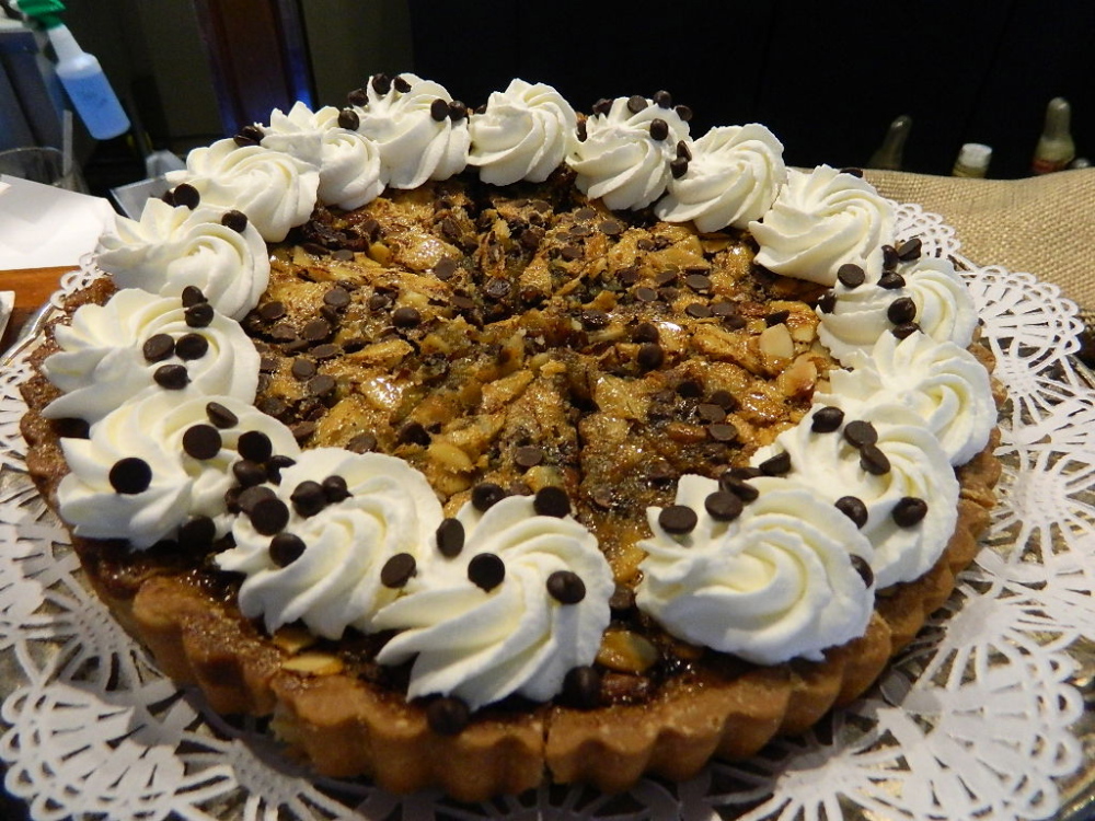 I happened to be seated facing the bar, where six desserts were arrayed. And all I could do was stare at them for over two hours until, satiated and stuffed, I waddled over to select the chocolate almond tart. I added a large portion of vanilla ice milk, something I enjoy often in the Broad Arrow Tavern where it is always included in the luncheon buffet. The tart was decadent and the ice milk refreshing. I’d lined up Jacob to help me up out of my seat and out the door but was able, rather surprisingly, to do it myself.