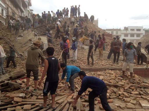 Help poured in after Saturday’s magnitude-7.8 quake, with countries large and small sending medical and rescue teams, aircraft and basic supplies. The small airport in the capital of Kathmandu was congested and chaotic, with some flights forced to turn back early in the day.