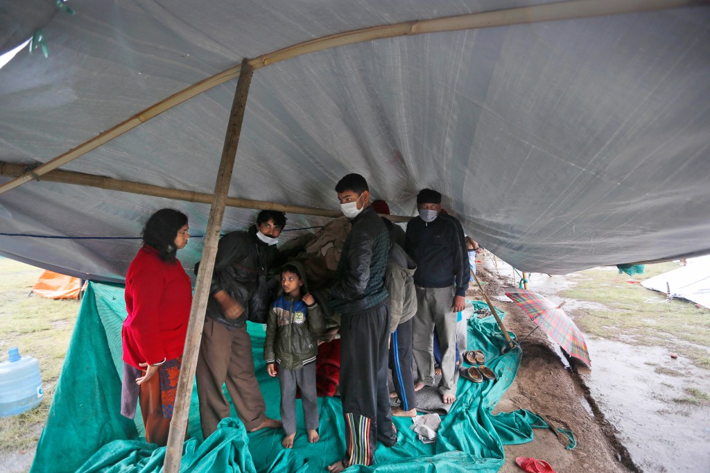 “It’s hard that he can’t be in his own home right now. He should be there, we should be there, but we aren’t safe. We’re afraid of the aftershocks,” Mainali said, feeding the as-yet unnamed infant from a bottle as a half-dozen relatives cooked a meal on a gas cooker outside the tent in a grassy park.