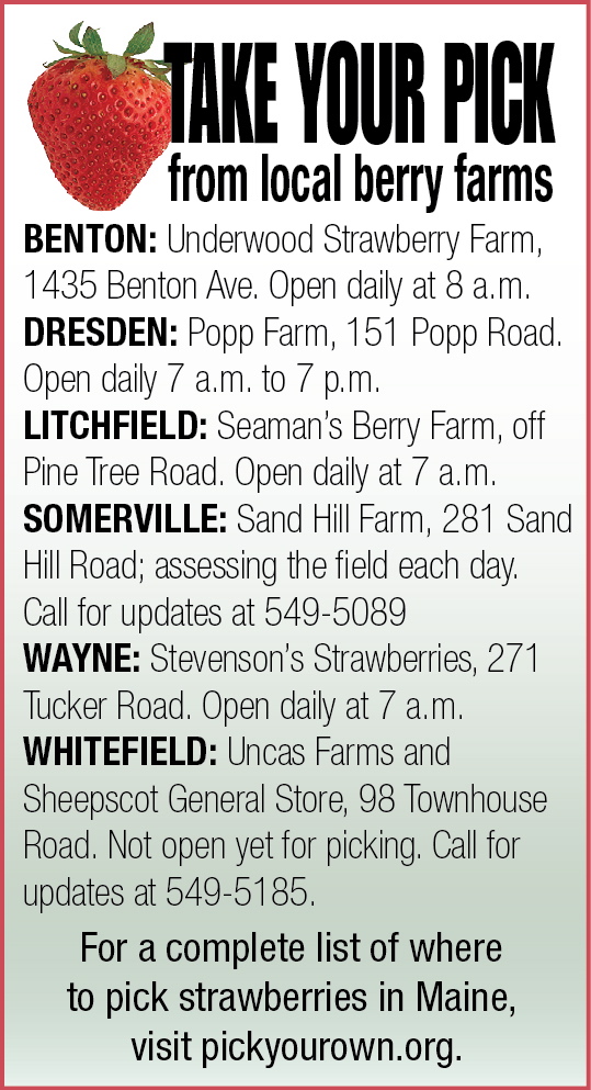 The farm, which opened for strawberry season Monday, will have raspberries and blueberries for picking after strawberries, Popp said. The seven to eight acres of strawberry fields are mostly for self-pick customers, but the farm also sells strawberries at farmers markets in Gardiner, Bath and Mill Park in Augusta.
