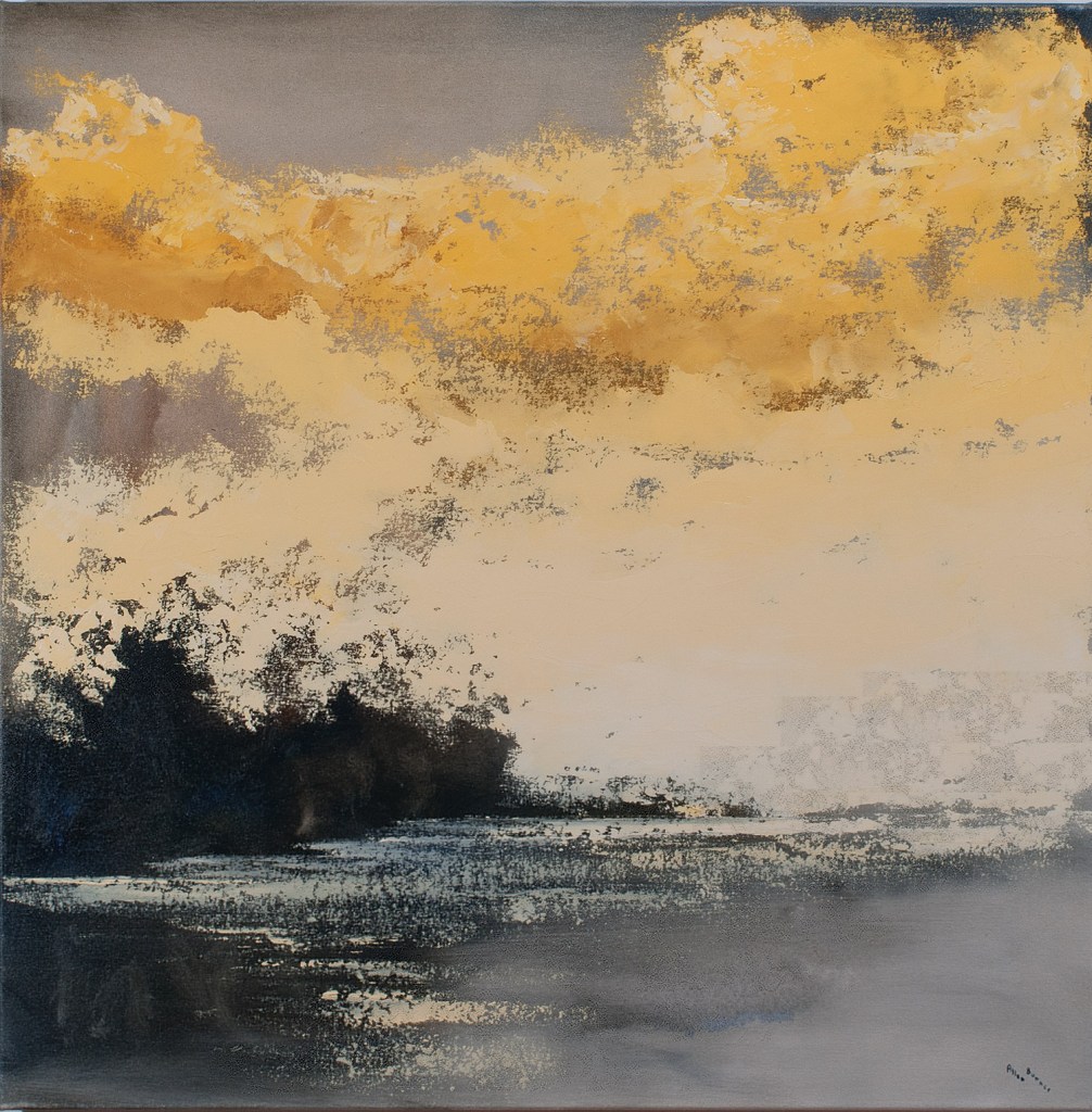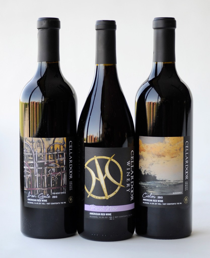 Bunker also made a painting for consideration for the Iron Gate label, though Cellardoor chose Ferrell’s image. But Doulton liked Bunker’s work, and asked to see other paintings. He showed her several, and she chose an oil seascape of orange and yellow clouds forming over the water and shore. Cellardoor created a vintage, the Cielos, to fit the image. Cielo is the Spanish word for sky, and also refers to a kind of cloud formation.